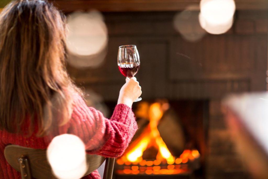 Abends sitzen beim Glas Wein
